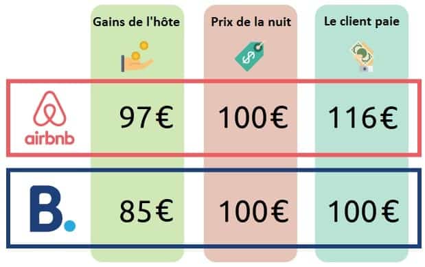 À chaque réservation, il y a deux protagonistes : l’hôte et le voyageur. Airbnb ponctionne une commission sur les deux, tandis que Booking.com fait porter l’intégralité des frais sur le propriétaire. Les clients, eux, n’ont aucun surcoût à régler lors de la réservation sur Booking.com. En revanche, à la fin de chaque mois, la plateforme prélève un pourcentage du chiffre d’affaires réalisé.